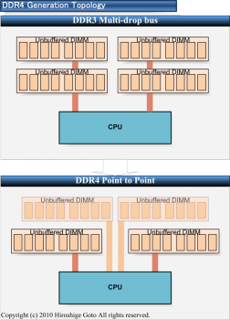 Každopádně nástup DDR4 se očekává až v roce 2014 (ještě nedávno hovořily odhady o nástupu DDR4 o roce 2012 až 2013). Poměrně optimisticky však vypadá prognóza na rok 2015, kdy by měly DDR4 paměti ukousnout z trhu více než polovinu. Troufáme si říci, že to tak horké nebude, že budou výrobci spíše rádi za jednu třetinu. S DDR4 paměťmi totiž přijde několik zásadních problémů, které by mohly jejich nástup lehce zpomalit.