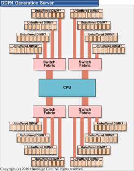 Druhý scénář počítá s tím, že mainstreamový procesor bude mít paměťové kanály čtyři. Tím se nám ovšem trochu zkomplikuje (a tudíž stoupnou náklady na) návrh spojů na základní desce (ona už bude docela honička při předpokládaných taktech ty signály vůbec uhlídat). I tak je cesta bezbolestného upgradu dlážděna počátečním snížením výkonu paměťového subsystému ve formě osazení pouze dvou modulů (což pořád bude řešení dvakrát tak rychlé v porovnání s DDR3, tedy pokud se bavíme jen o propustnosti). Později stačí přikoupit další dva, čímž se jednak zvýší kapacita paměti a také propustnost. Právě očekávané zvýšení nákladů na složitost desek by mohlo zpomalit nástup DDR4 (kromě toho, že budou jako každá nová technologie v porovnání s předchozí (DDR3) prostě drahé). Uživatel bude jistě hodně přemýšlet, zda se mu vyplatí jít do DDR4, když DDR3 bude i v tu chvíli odvádět svou práci navýsost dobře (a nebude zřejmě problém postavit PC i s 16 GB paměti). Reálný nárůst výkonu v aplikacích zpravidla nebývá nijak zásadní.