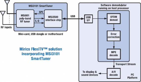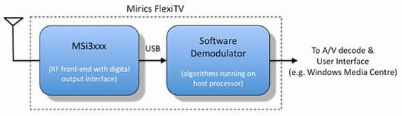O dekódování TV signálů do patřičné podoby se tak vlastně stará procesor (zpráva uvádí GPU, resp. použití AMD APP, Mirics na webu hovoří jasně o "host processoru", tak si to přeberte), což je poměrně zajímavé řešení. Sestává z jednoduchého čipu, který překlápí TV signál do USB podoby a po USB již putuje počítačem k obslužnému softwaru/ovladačům - je tedy zjevné, že grafická karta nese nějaký ten základní USB řadič.
