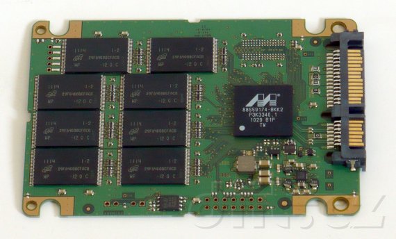 Námi testovaný 128GB model dále sestává z 16 NAND MLC paměťových čipů Micron, každý o kapacitě 8 GiB s komunikačním standardem ONFI 2.2 25nm. Vyšší kapacita série Crucial M4 znamená vyšší hustotu dat na NAND čipech a tím i trochu vyšší výkon disku. 7 % z kapacity každého flash čipu výrobce rezervoval pro wear leveling – tedy ochranu proti opotřebení. Tolik na vysvětelnou ohledně rozdílu mezi udávanou a reálnou kapacitou SSD (kapacita MLC čipu – 1 KiB = 1 024 bajtů, zatímco kapacita SSD - 1 kB = 1 000 bajtů).