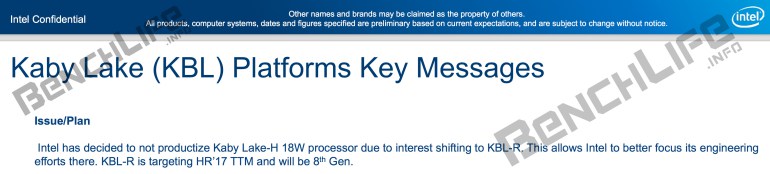 Ta je sama o sobě poměrně netypická, pro úsporné modely notebooků a Ultrabooky je totiž tradičně určena řada „U“, která právě TDP kolem 15-18 wattů nabízí. Zde jde ovšem o 18W procesor pro velké notebooky („H“). Přesto, že k jeho vydání nedojde, si můžeme položit otázku, proč ho Intel vlastně plánoval. Jediné smysluplné vysvětlení souvisí s výdrží takového notebooku. Osazení 18W procesoru do velkého zařízení, které má kapacitu baterie dimenzovanou na 45W modely, může znamenat velmi dlouhou výdrž baterie. I když se v diskusích leckdy objevují hlasy volající po úsporném notebooku s velkou baterií, není zřejmě poptávka tak silná, aby se podobný produkt vyplatilo vyrábět. Intel zrušení 18W řady H vysvětlil tím, že výrobci projevili zájem o jiné produkty.