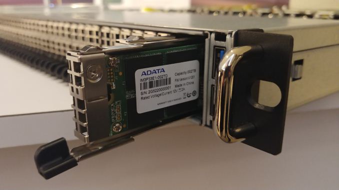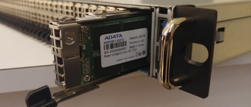 Díky kompaktnosti samotného disku je M.3 formát předurčen pro použití v kompaktních systémech typu U1. Na ukázce níže ADATA představuje použití v praxi, kdy umístil do 1U serveru 64 disků, které lze snadno odebrat za chodu.