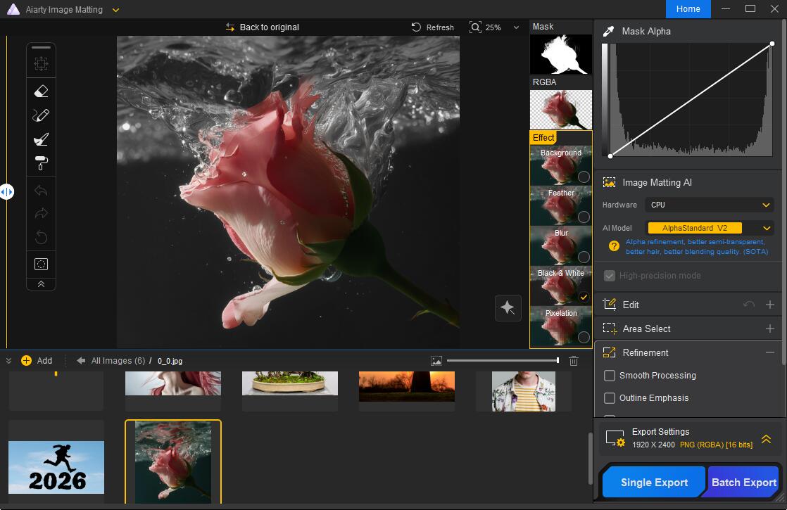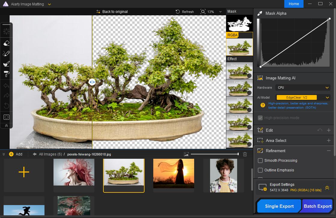 Aiarty Image Matting je praktický nástroj pro rychlé a kvalitní odstranění pozadí z fotografií, který disponuje několika AI modely pro různé typy snímků, použitím offline a dávkovým zpracováním.