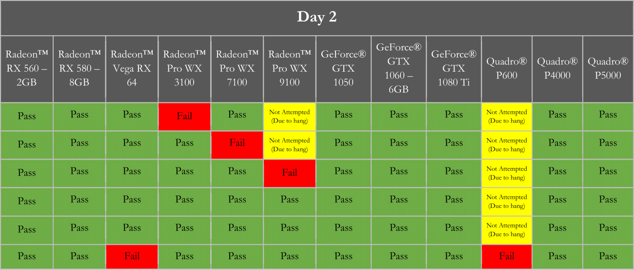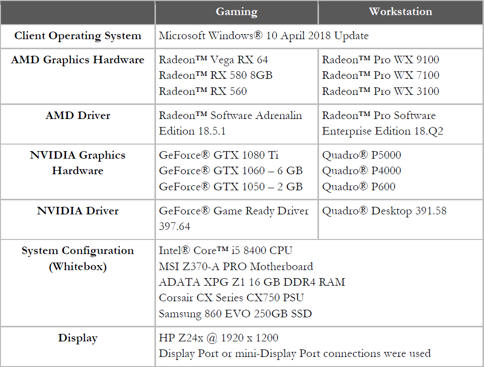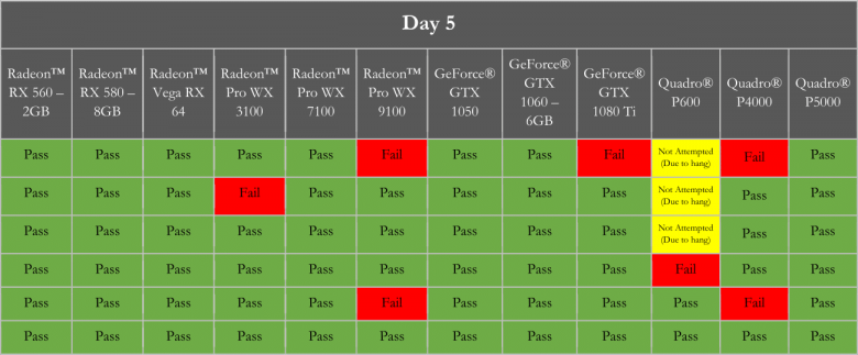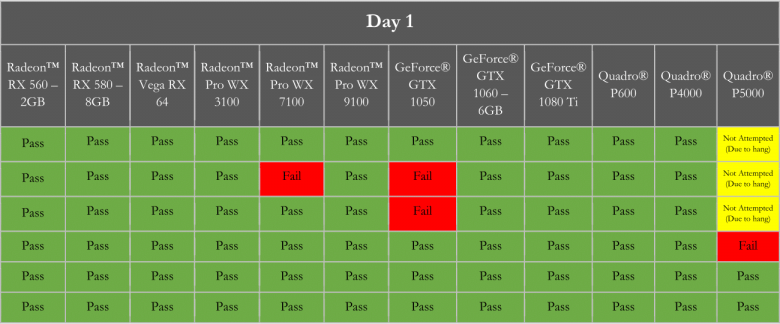 Společnost QA Consultants se po dvacet let zaobírá testováním softwaru, mezi její přední zákazníky patří Adobe, Apple nebo Toyota. Tentokrát se ale zaměřila na testování stability grafických ovladačů. Svůj test provedla na šestici grafických karet od AMD a šestici od Nvidie. Ve výběru byly jak herní tak i profesionální modely. Testovací systémy byly postavené na Microsoft Hardware Lab Kit (HLK).