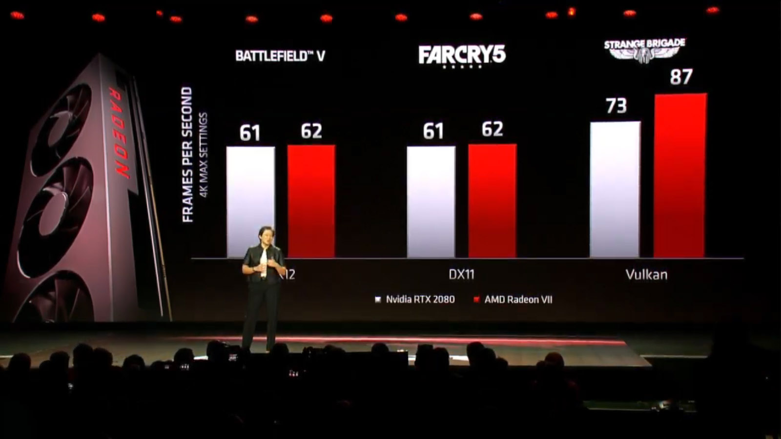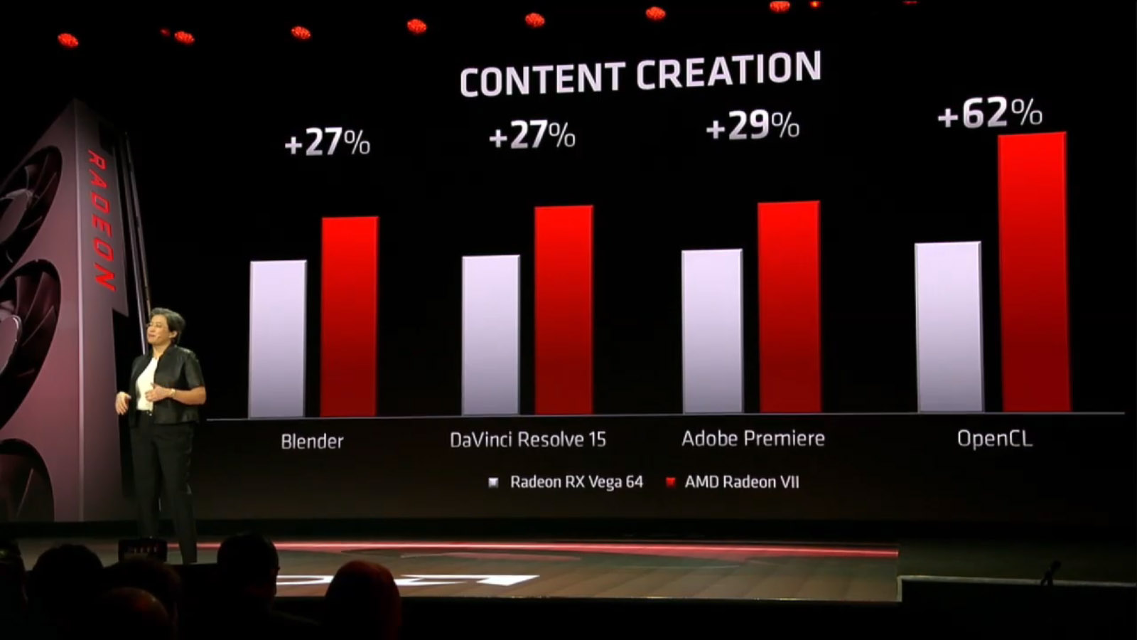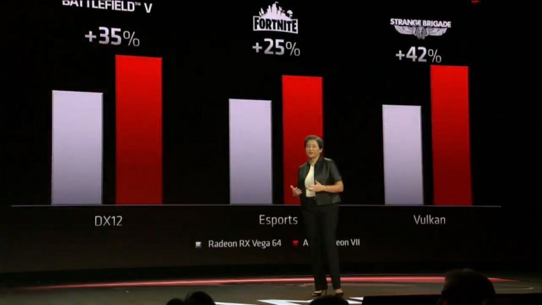 Su to ale také má rok od roku jednodušší. Zatímco v prvních letech v roli CEO musela prezentovat produkty, jejichž vývoj začal při seškrcení rozpočtu a prodloužení vývojových cyklů, nyní už dochází na produkty, na nichž se už do jisté míry podepsalo zlepšení situace ve firmě pod jejím vedením. Produktů je tedy více a mají co nabídnout. Po úvodní rekapitulaci posledních vydaných novinek vzala Lisa Su do ruky jakousi grafickou kartu a ohlásila Radeon VII (skavene, připiš si na konto dva internety a bludišťáka navrch).