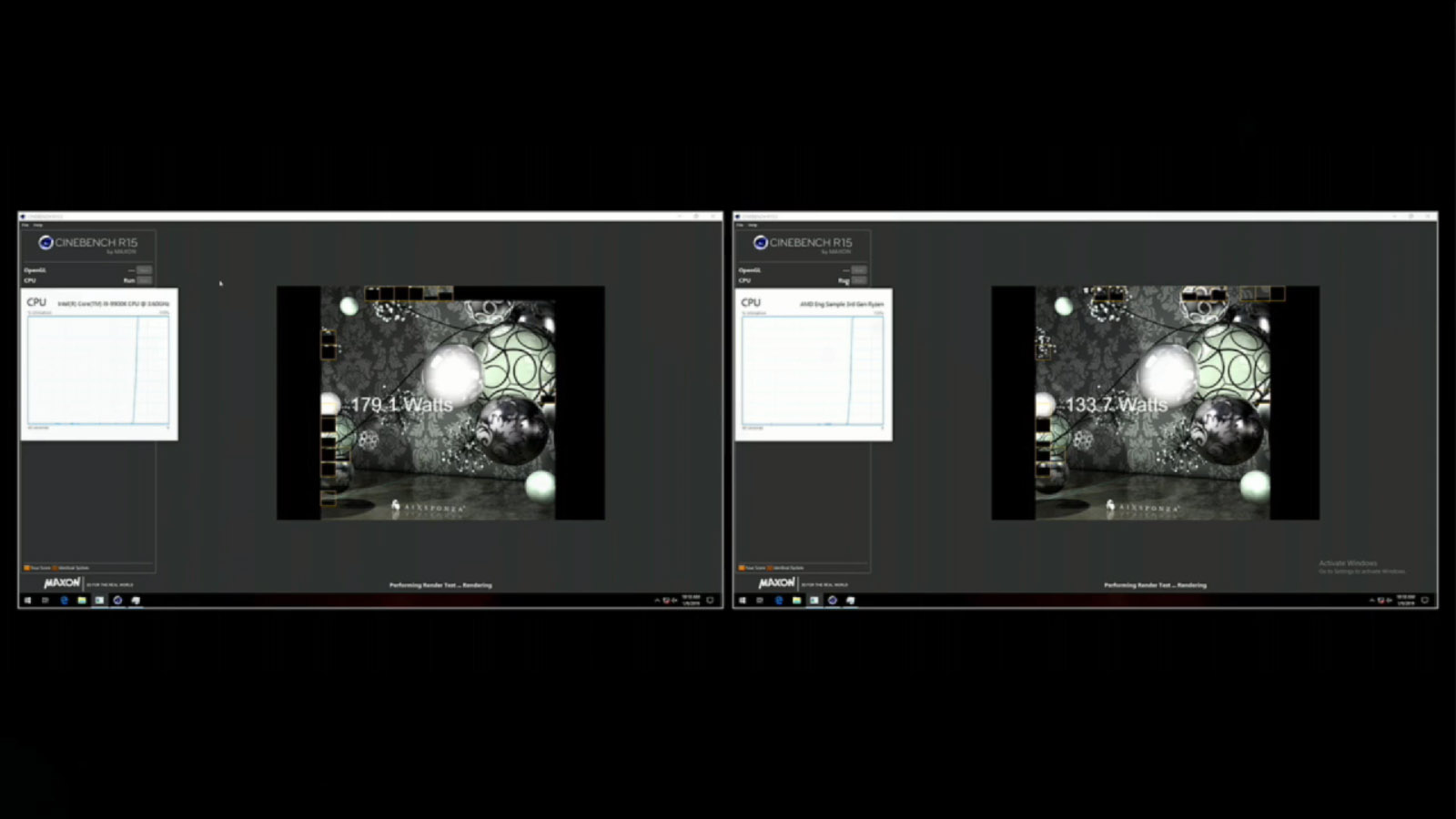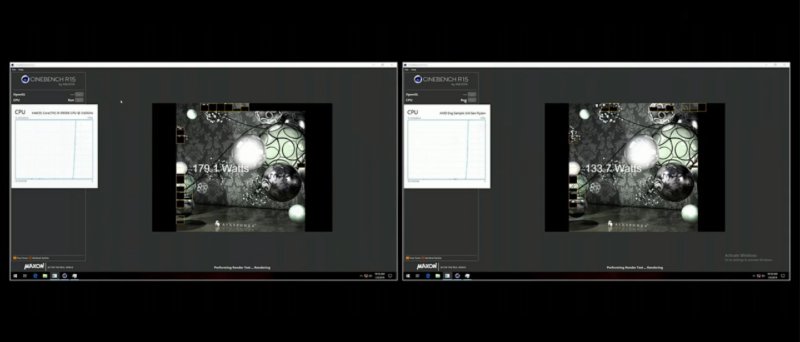 AMD tímto demem předvedla jednak to, že Zen 2 byl při stejném počtu jader o okamžik rychlejší, ale především, že spotřeba sestavy se Zen 2 byla téměř o 50 wattů nižší. Core i9 dosáhlo 2040 bodů, vzorek Zen 2 2057 bodů. Z těchto výsledků lze vyvodit několik závěrů: