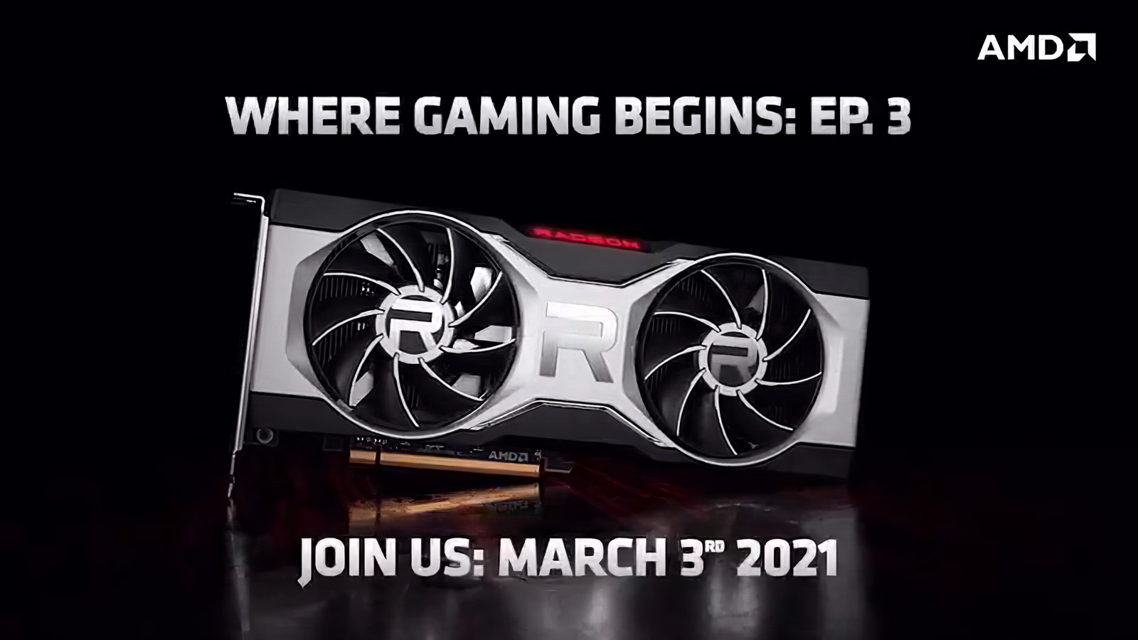 Nyní AMD avizovala na Twitteru, že již (se zhruba dvoutýdenním předstihem před očekávaným datem vydání), zveřejní online streamovanou akci Where Gaming Begins. Její dva minulé díly předcházely vydání Ryzen 5000 a Radeonů 6000. Krátká videoupoutávka (respektive dvě krátké podobné videoupoutávky - jedna na Twitteru, druhá na webu) vyobrazuje finální podobu referenční karty, téměř jistě chystaného Radeonu RX 6700 XT: