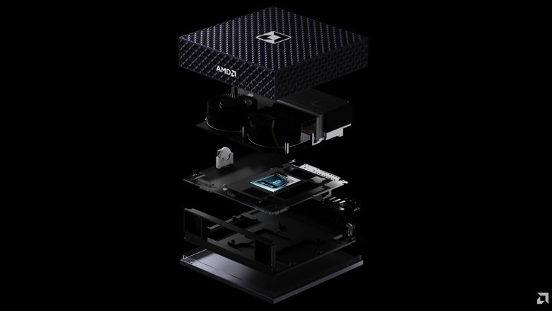 AMD považuje Ryzen AI Halo za nejmenší systém pro AI vývojáře na světě, který zvládá lokálně pracovat s modely o 200 miliardách parametrů. O chlazení mobilního APU Strix Halo se stará systém heatpipe s dvojicí chladičů.