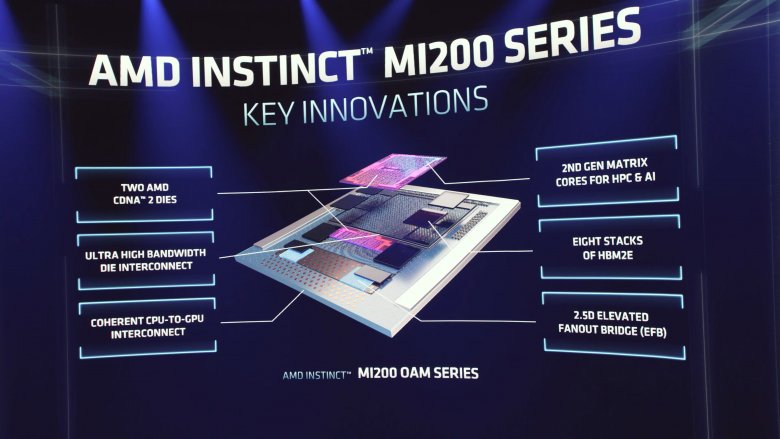 Z technologického hlediska je Aldebaran zajímavý i metodou pouzdření a spojení jednotlivých čipletů vzájemně i čipletů s HBM2E.
