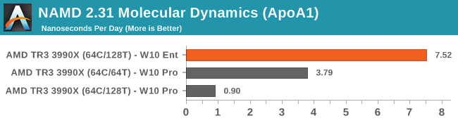 Některé recenze, např. na webu Anandtech, ale upozornily, že při použití Windows 10 ve verzích vyšších než Pro (např. Enterprise), které podporují až 256 vláken, dosahuje Threadripper 3990X v četných aplikacích lepší výsledky než v Pro. Nemůže to být počtem podporovaných vláken, ale obecný předpoklad byl, že verze OS určená pro servery a pracovní stanice zkrátka z nějakého důvodu zvládá s vyšším počtem vláken pracovat lépe.