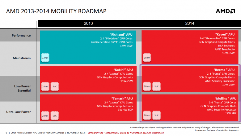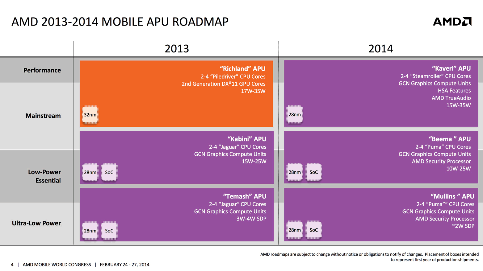 Strategie odpovídá roadmapě z roku 2012, „3 generace“ x86 APU/SoC nabídne spotřebu pod 3 watty