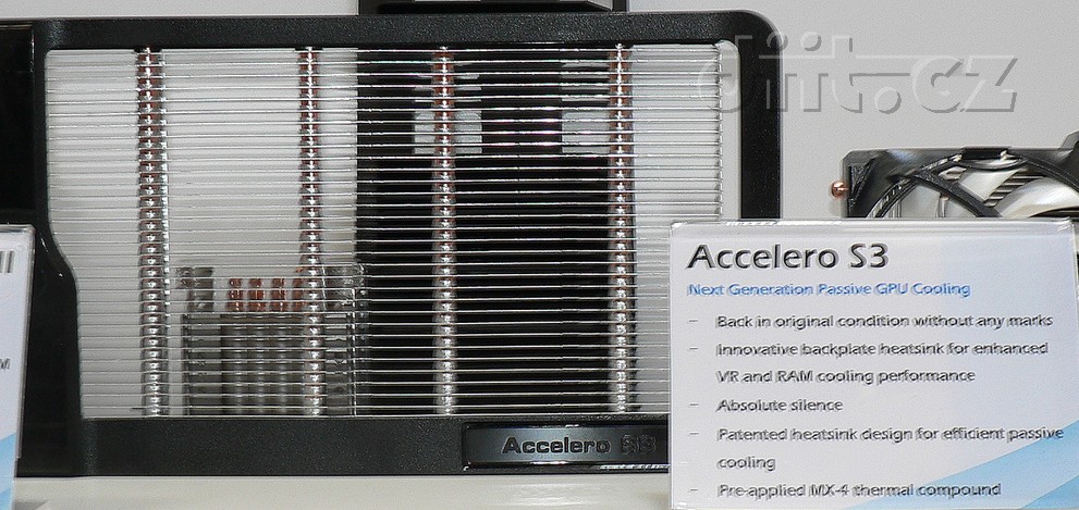 U Arcticu, který dřív býval Cooling, ale dnes dělá všelijaké čínské cetky, jsem se zastavil jen kvůli dotázání na zdroje. Dozvěděl jsem se tak nějak to, že zdroje R/RF už jsou vyřazeny a nebudou. Z jinak nudného sortimentu mne zaujalo Accelero S3. Cenu mi však odmítali říct, že to je sotva uvedené. Při návštěvě českých e-shopů se ale zdá, že už je to nějaký pátek v prodeji. Za devět stovek se museli pomátnout. Této firmě dle mého názoru už ujel vlak, cetky mne osobně vůbec nezajímají a doby, kdy Accelero S1 a Freezer 64 stály 250 - 300 Kč a neměly absoutně žádnou konkurenci, jsou dávno pryč. Škoda.