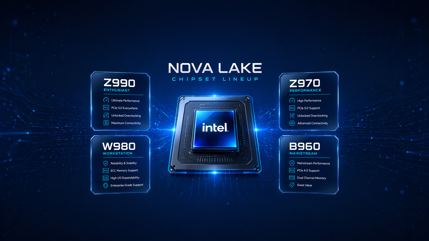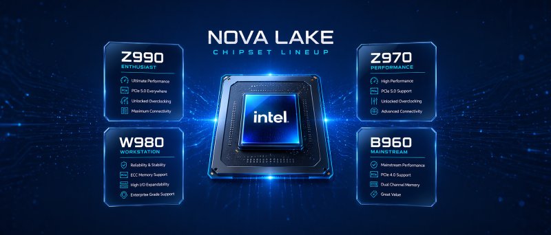 S platformou pro Nova Lake se situace může změnit k lepšímu. OC budou podporovat dva čipsety: enthusiast Z990 a high-end Z970. Určité obavy lze mít z toho důvodu, že Z990 má být primárně určen pro systémy s dvoudlaždicovou konfigurací Nova Lake, tedy tou, která má podle dostupných zdrojů stát výrazně přes $1000. Z970 pak má sloužit pro klasický high-end, v kontextu Nova Lake tedy hlavně Core Ultra 9 (28 jader) a možná vyšší modely Core Ultra 7.