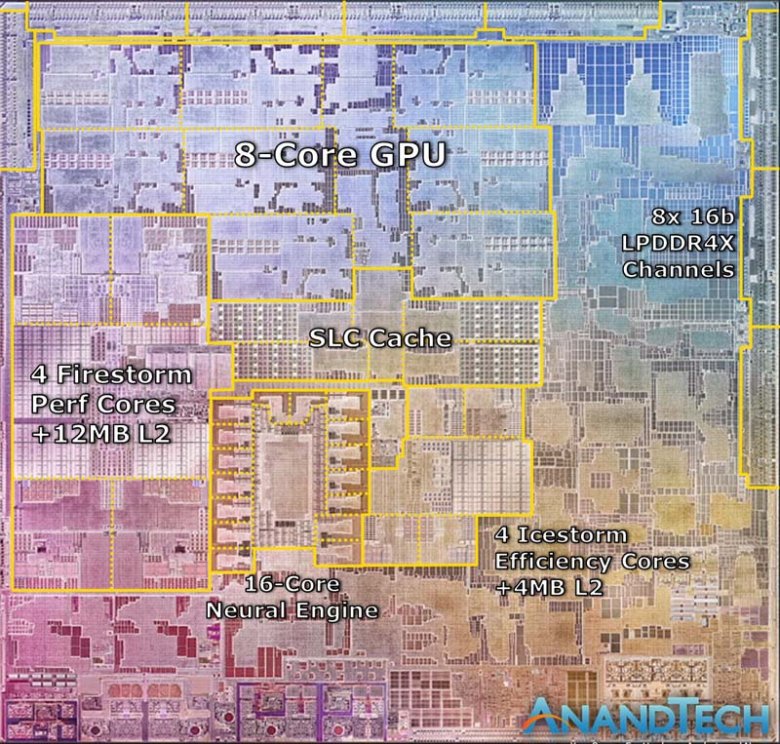 snímek jádra Apple M1: popisky Anandtech