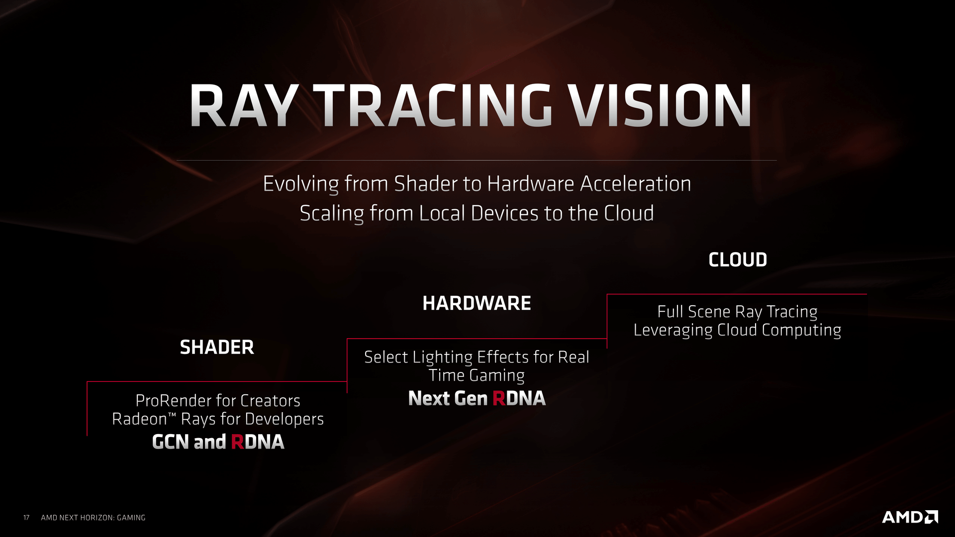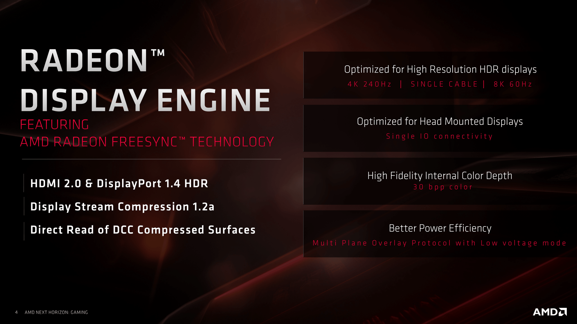 První nazývá FidelityFX, open source efekty, které zahrnují kromě jiného algoritmus pro adaptivní zostření textur. AMD ohlásila, že 18 studií pracuje na zahrnutí FidelityFX do svých her či enginů.