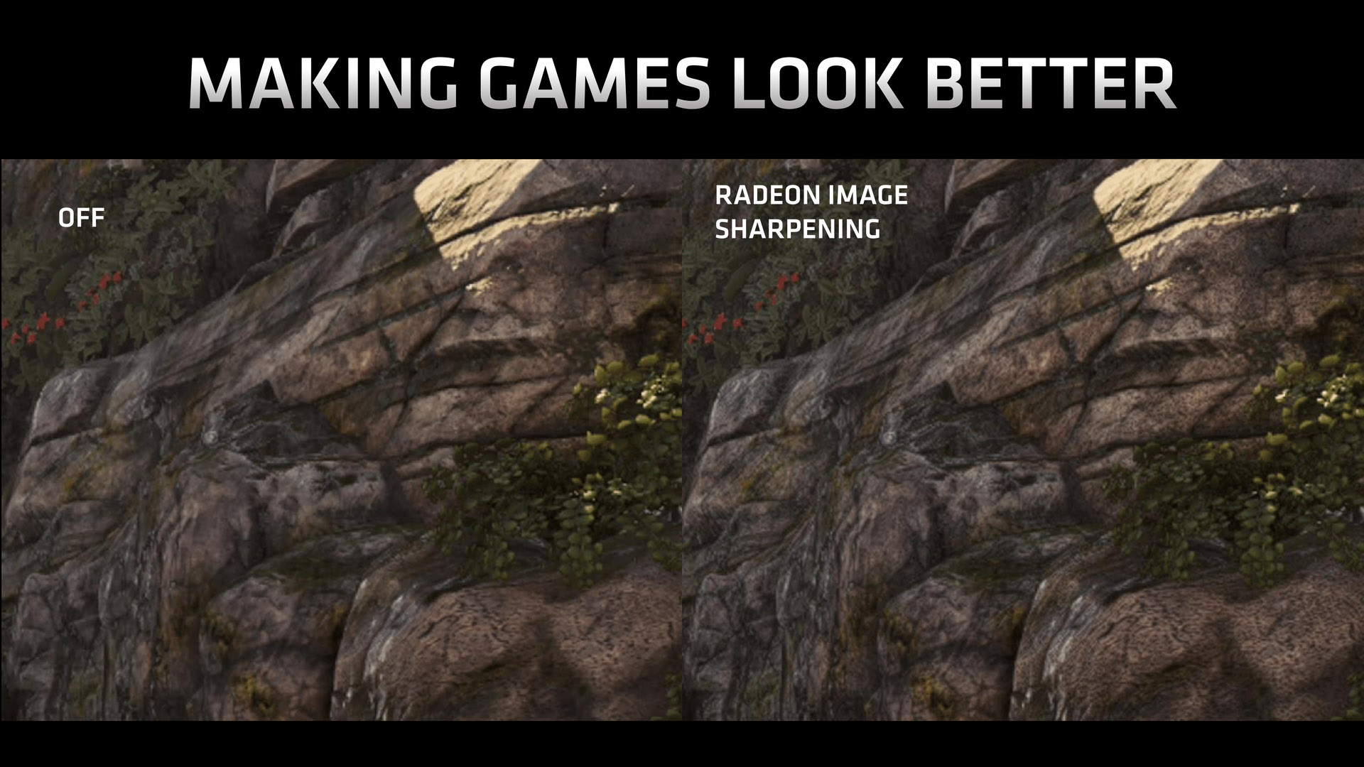 Aby nepřišli zkrátka uživatelé stávajících her, přišla s obdobnou funkcí, kterou lze zapnout na úrovni ovladačů - bez potřeby podpory ze strany hry. Nazývá se RIS - Radeon Image Sharpening - a téměř bez dopadu na výkon (propady okolo 1 %) umožňuje zostřit herní obraz.