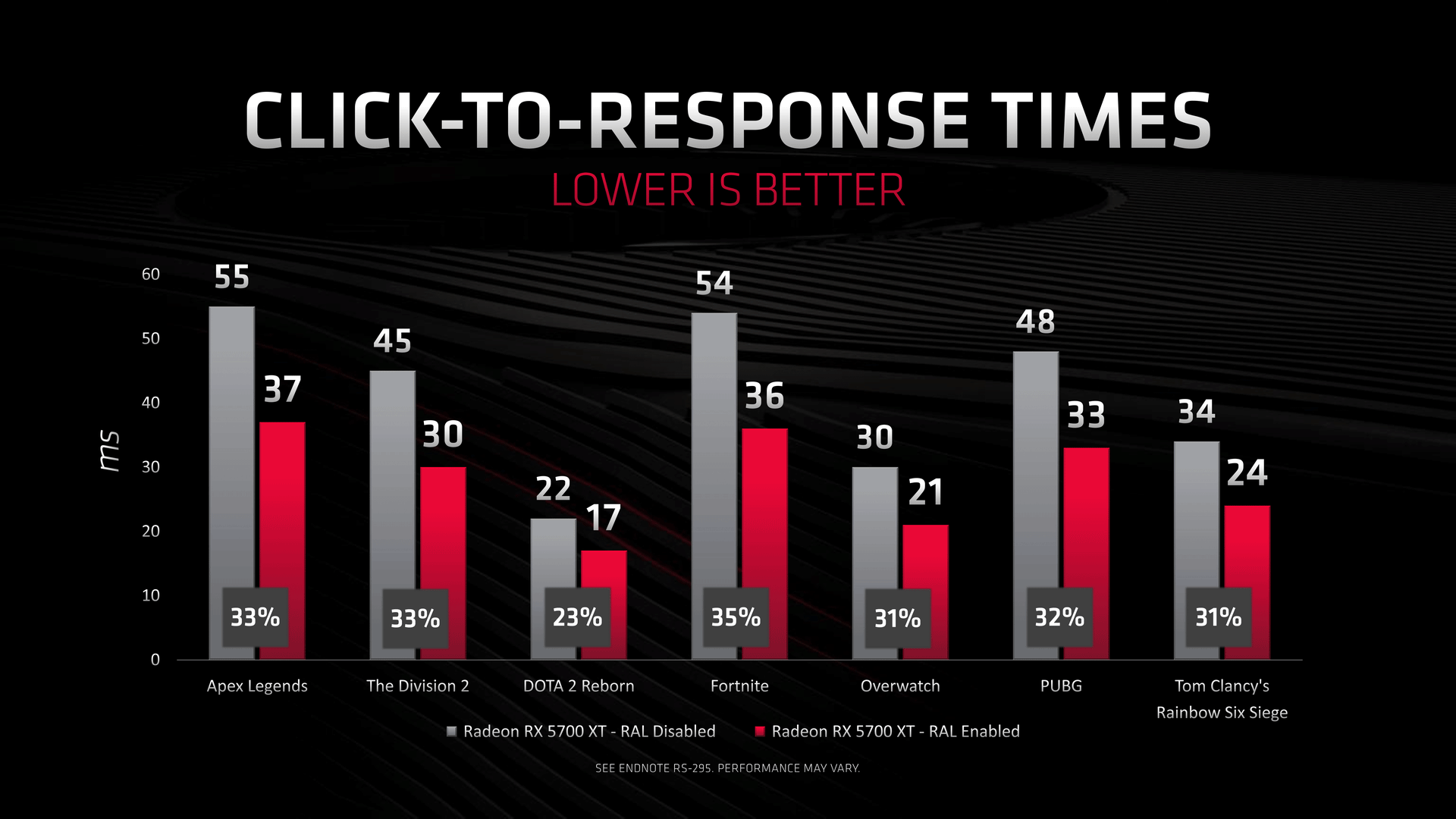 Druhým bonusem je pak RAL: Radeon anti-lag. Tato funkce zkracuje odezvy mezi kliknutím myši a reakci na obrazovce o čtvrtinu až třetinu a to bez ohledu na snímkovou frekvenci.