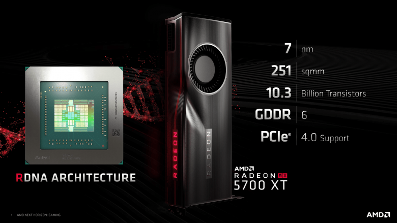 Začněme u specifikací Radeonu RX 5700 a Radeonu RX 5700 XT, jak se novinky jmenují. Obě zakládají na stejném 7nm GPU Navi, které nese 10,3 miliard tranzistorů. To je méně než u obou velkých GPU Vega. Nejbližší srovnání najdeme v nabídce Nvidie, u GPU Turing TU106 použitém na GeForce RTX 2070 a GeForce RTX 2060. Obsahuje o 300 milionů tranzistorů více, celkem 10,6 miliardy. Právě jemu a jmenovaným kartám nové Radeony konkurují. GPU Navi dosahuje plochy 251 mm², což je o trochu méně, než uváděla většina odhadů.