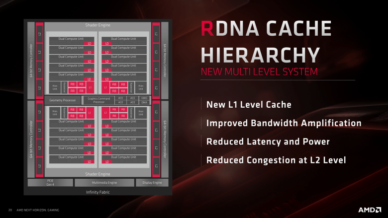 Přestože v předchozích odstavcích byla řeč o násobcích, je nutné mít na paměti, že pro typickou zátěž nebyla GCN nijak extrémně neefektivní a tyto změny se neprojeví násobením průměrného herního výkonu. Projeví se násobením výpočetního potenciálu v situacích či spíše okamžicích, kdy GCN byla limitována některým prvkem, který RDNA posílila. AMD neuvádí žádná konkrétní čísla, ale osobně si myslím, že na herních FPS se tyto změny - byť rozsáhlé a jistě na vývoj náročné - projeví menší měrou, než přinesla prostá změna poměru aritmetických jednotek ku ROP (zdvojnásobení oproti Polaris).