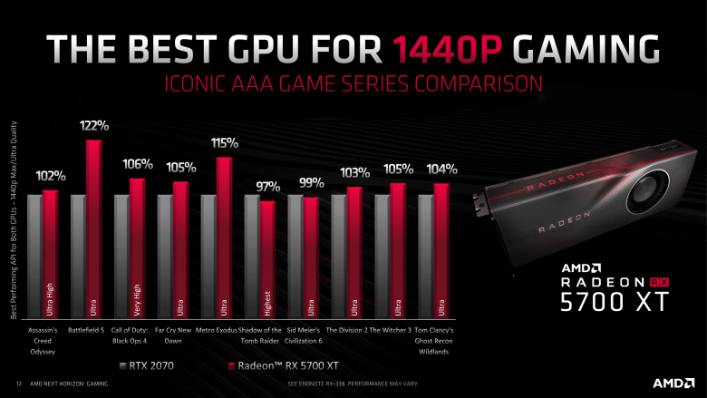 AMD však do Navi dokázala vměstnat mírně vyšší počet stream-procesorů (2560) a texturovacích jednotek (160) než Nvidia do TU106 (2304 a 144). Je možné, že právě díky tomu má Radeon RX 5700 XT nabídnout výkon mírně vyšší než GeForce RTX 2070. Každopádně lze říct, že půjde o velmi zajímavý souboj, ze kterého by Navi měla co do poměru výkon na tranzistor a takt vyjít jako vítěz. Turingu ovšem zůstane vyšší energetická efektivita.