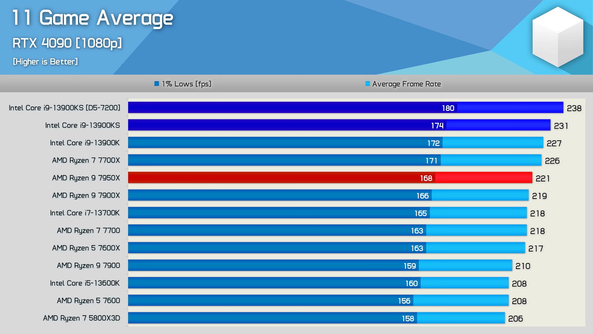 Intel neposlal vzorky procesorů na recenze, takže není moc co hodnotit. Vlastní cestou si procesor opatřila redakce webu HardwareUnboxed, která je autorem grafu herního výkonu (průměr 11 her v 1080p), jenž vidíte výše. Oficiální cena procesoru byla nastavena na $699, což je o $40 pod cenou Core i9-12900KS v době uvedení. Únorové vydání Ryzen 7000X3D je znát.