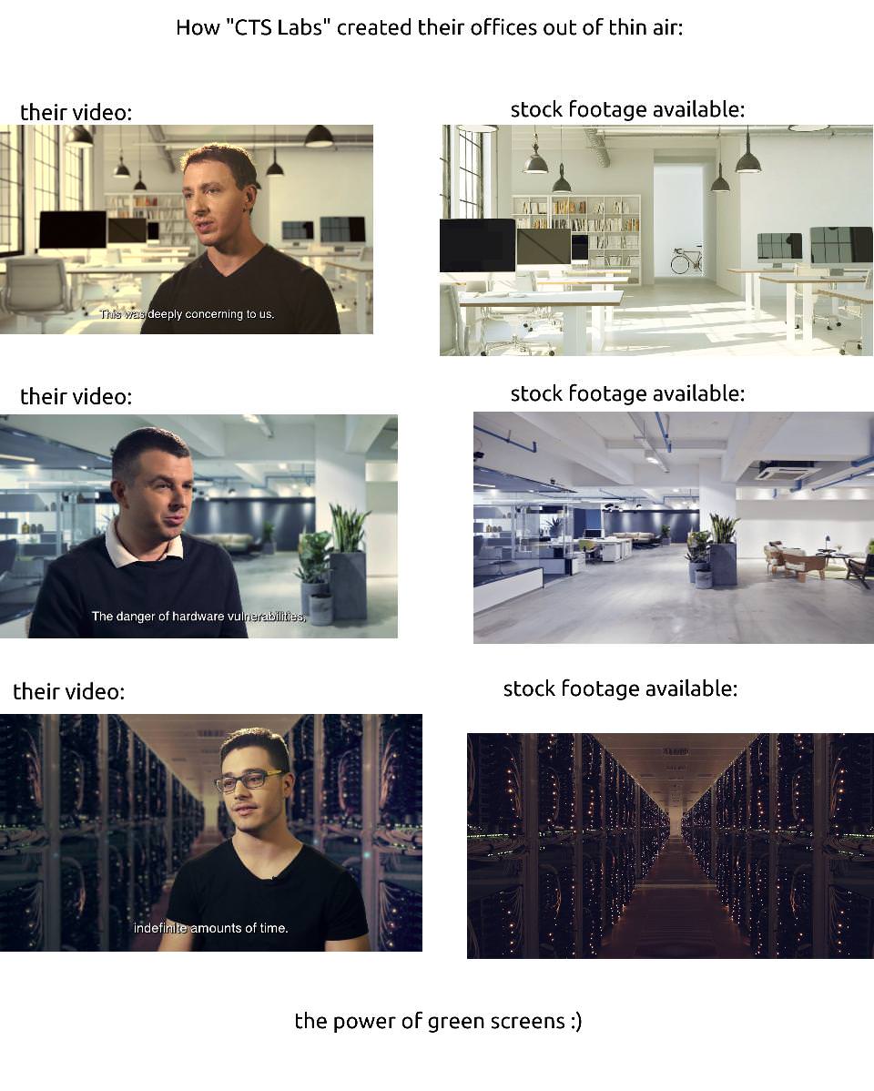 Pokud si dovodíme, kolik času zabrala analýza slabin Spectre a Meltdown od jejich zjištění do veřejné publikace zahrnující popisy jejich fungovaní a míru rizik, vychází, že CTS musela na analýze pracovat od loňského roku, kdy byla založena. Google v archivu žádnou verzi webu společnosti CTS nemá a uvádí pouze: „Vlastník tuto stránku před Googlem ne zcela optimálním způsobem zablokoval a nemohli jsme proto vytvořit dobrý popis. Pokud vlastníky webu znáte, sdělte jim, že je Google blokován souborem robots.txt, a nemůže proto ve výsledcích vyhledávání zobrazovat popis stránky.“ Archive.org však historii tohoto webu sleduje a poprvé se s ním setkal 17. ledna 2018. Protože se v souvislosti s touto firmou prakticky nedá mluvit o žádné historii ani předchozích aktivitách, nenabízí se pouze otázka, zda CTS někdo „analýzu produktů AMD“ zadal, ale spíše, zda někdo za tímto účelem společnost nezaložil.