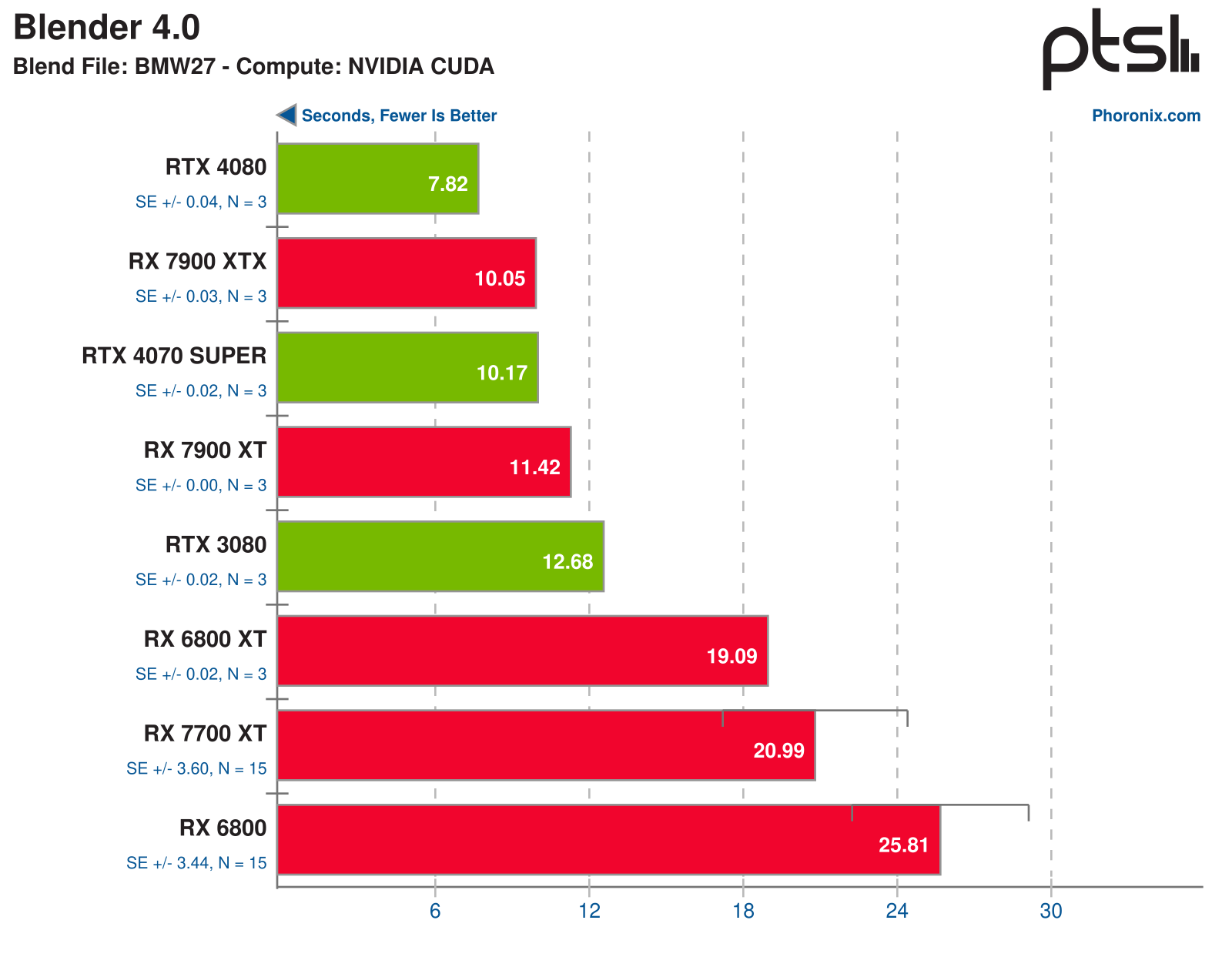 Phoronix otestoval, jak to funguje v Blenderu a potvrdilo, že to funguje poměrně obstojně: