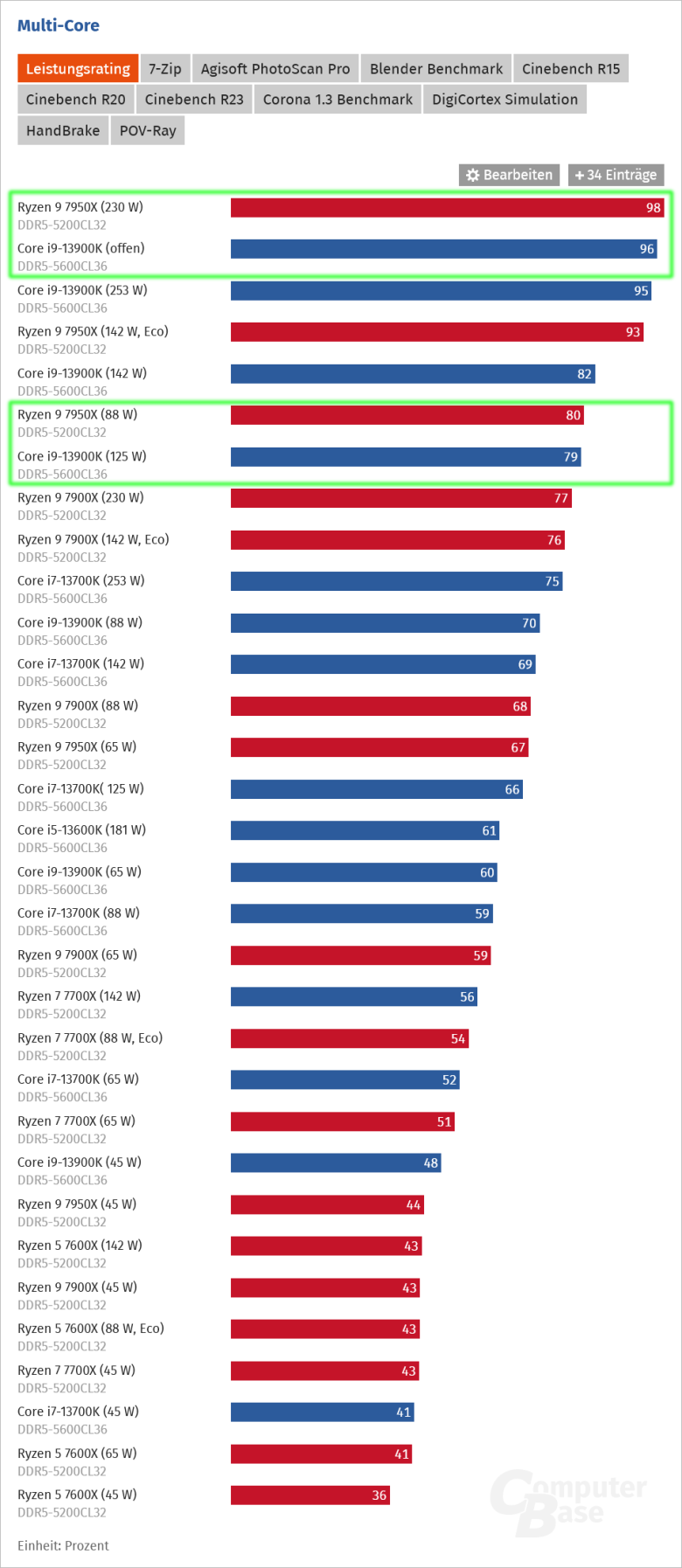 Zkusme se navzdory tomu podívat na vzájemnou pozici Core i9-13900K vs. Ryzen 9 7950X v energetickém testu, který provedla redakce ComputerBase: