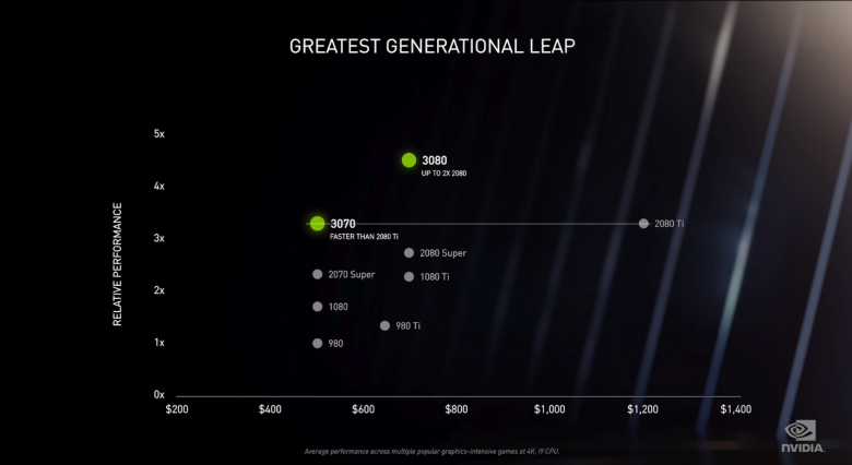 Když CEO Nvidie Jen-Hsun Huang začátkem září představil herní modely generace Ampere, odhalil mimo jiné GeForce RTX 3070, která byla prezentována jako (cituji ze slajdu níže) „faster than 2080 Ti“, tedy rychlejší než GeForce RTX 2080 Ti.