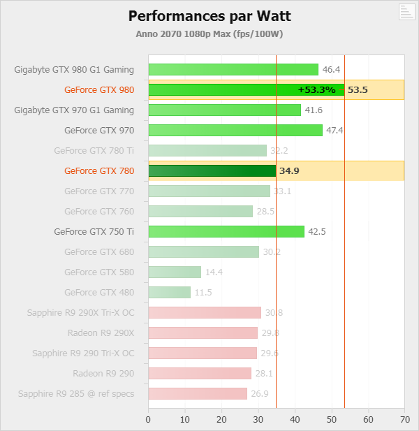 Maxwell (GeForce GTX 900) přinesl až ~53% navýšení energetické efektivity