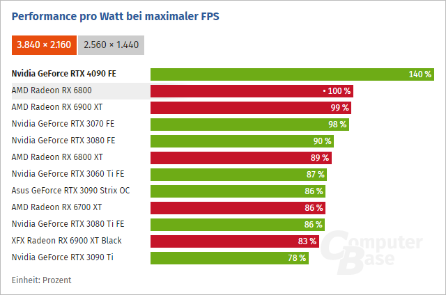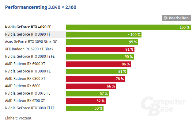 Podle ComputerBase se výkon GeForce RTX 4090 oproti GeForce RTX 3090 Ti zvyšuje o 65 %.