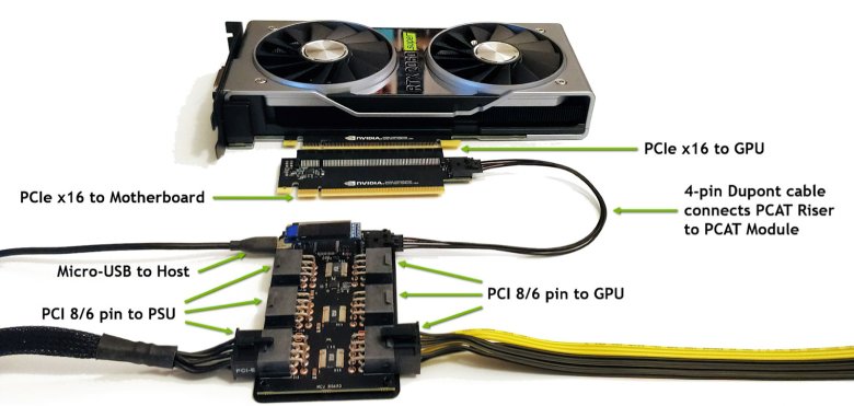 Karta, vybavená 16pin napájecím konektorem, podporuje výchozí 450W TDP, ale je možné limit zvýšit na 600W TDP. Podrobné testování s 600W limitem zatím některé weby odložily, neboť toto nastavení vyžaduje plně zapojenou napájecí redukci (4× osmipin) a nástroj PCAT, který Nvidia před dvěma lety poskytla některým redakcím k měření spotřeby nepodporuje více než tři osmipinové konektory zároveň: