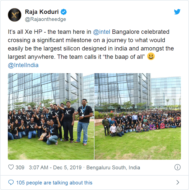 Komplikovanější je to s dalšími produkty. V polovině listopadu 2019 Intel hovořil tzv. Ponte Vecchio, 5. prosince Raja Koduri tweetnul cosi o Baap of All (=Otec všech [GPU]).
