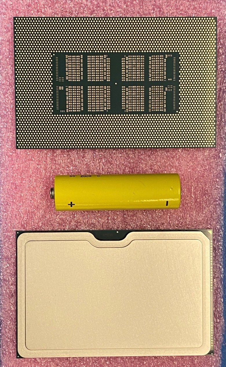 Naproti tomu Baap of All (na snímku s monočlánkem) je pravděpodobně křemíkový monolit („the largest silicon designed in India and amongst the largest anywhere“). Respektive buďto křemíkový monolit obklopený HBM pamětmi a překrytý masivním IHS, nebo několik velkých „monolitů“ v jednom pouzdře. Jde skutečně o velké pouzdro, které podle různých diskusních odhadů dosahuje plochy cca 3700 až 4300 (81×53) milimetrů čtverečních.* Pro srovnání, Epyc od AMD měří 75,4 × 58,5 mm (~4400 mm²). Toto je však výpočetní GPU. Zdůrazňuji, že je řeč o pouzdru, nikoli o ploše křemíku. Pokud Koduri hovoří o největším křemíku vyvinutém v Indii a jednom z největších vůbec, pak by se křemíkové jádro muselo pohybovat v rozmezí zhruba 600-800 mm² (tabulku rozměrů největších GPU pro kontext najdete zde).