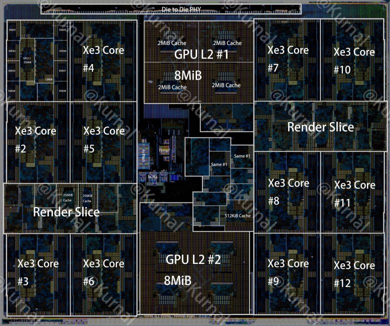 Možná bude vhodné začít tím, co GPU neobsahuje: Jak už jste si mohli všimnout výše, Intel v poslední době umisťuje multimediální obvody (en/de-kodéry videa) a obrazové výstupy na procesorovou dlaždici. Příčinou má být patrně snaha o vypínání grafické dlaždice mimo 3D zátěž (což by nebylo možné, pokud by obsahovala obvody, které se využívají stále, i mimo 3D zátěž).