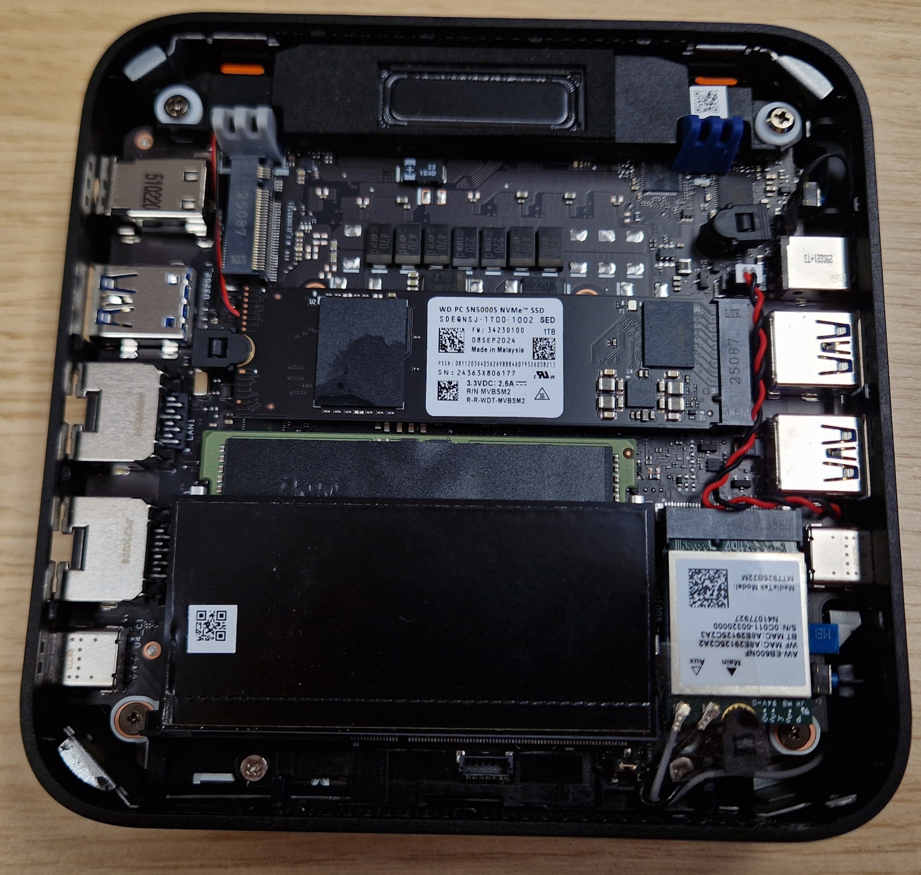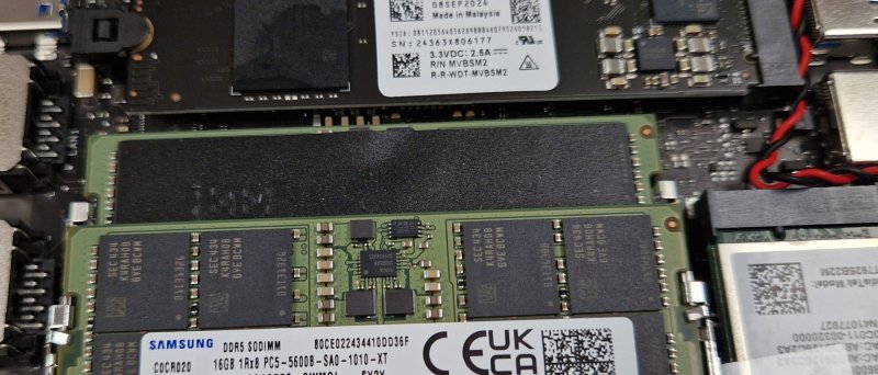 Uživatel může velmi snadno vyměnit některé komponenty miniPC, konkrétně můžeme měnit dvě M.2 2280 PCIe Gen4 x4 NVMe SSD, M.2 WiFi kartu a DDR5 SODIMM moduly.