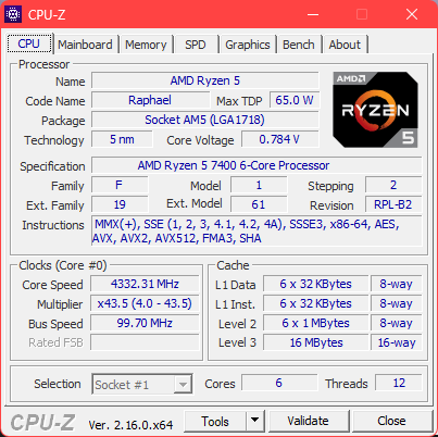 Jako testovací procesor jsem zvolil nejlevnější Zen4 šestijádro a to sice AMD Ryzen 5 7400, který jsem zakoupil za necelé tři tisíce Kč v Mironetu.