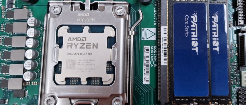 Jedná se o starší Zen4 šestijádro s maličkým Radeonem 610, ale určitě pro něj najdu i nějaké využití v budoucnu. Za zmínku stojí fakt, že napájecí kaskáda desky postrádá chlazení a napájecí limit procesoru limitovala na 54 Wattů, musíme tak očekávat nižší výkon procesoru.