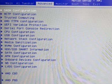 Můžeme samozřejmě konfigurovat Realtek DASH pro vzdálenou správu, což je obdoba Broadcom TruManage či Intel vPro. Grafickému jádru můžeme přidělit až 16GB VRAM, což je u maličkého Radeonu 610 naprosto zbytečné, ale zaujala mě možnost přidělit opravdu málo paměti a to sice 64MB. Také zde najdeme profily pro onen LVDS výstup.