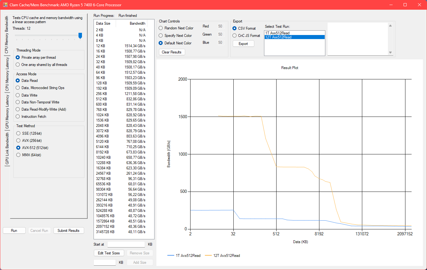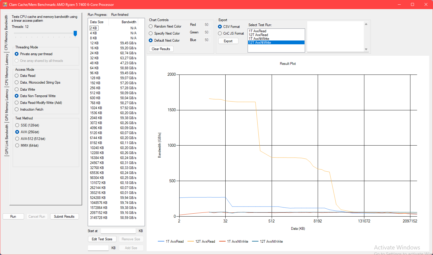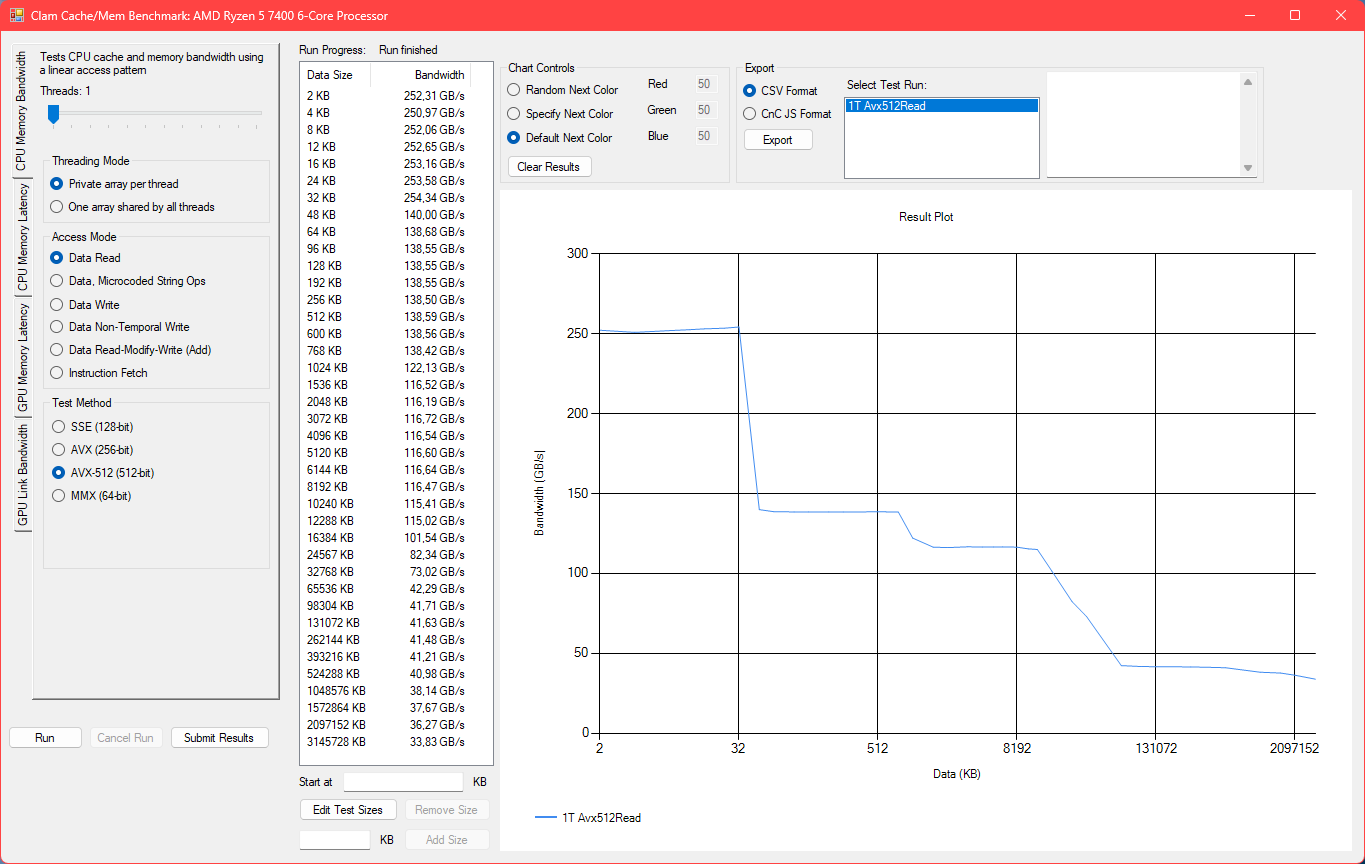 Tato kapitola je aktuálně novinkou, chtěl jsem totiž nějak lépe testovat paměťovou propustnost a také latence pamětí. To se všeobecně netestuje zrovna snadno a test v AIDA64 je takový velmi rychlý, nicméně na rychlé ověření, že jsou paměti nastavené správně postačí. Využívám tak programu Microbenchmark v GUI variantě, která kreslí i veselé grafy. Program umí testovat čtení i zápis do paměti mnoha způsoby, nechybí i testování latencí RAM.