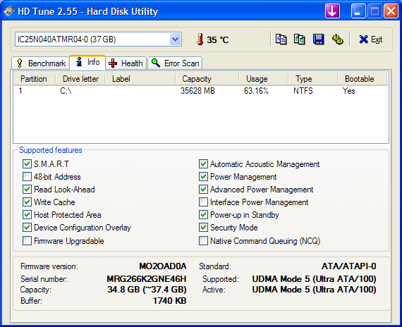 Testovaný disk lze označit za spíše horší disk, má chudák jen 4200 otáček za minutu a 2MB vyrovnávací paměť. I tak se snaží co jen může a výkon je ucházející.
