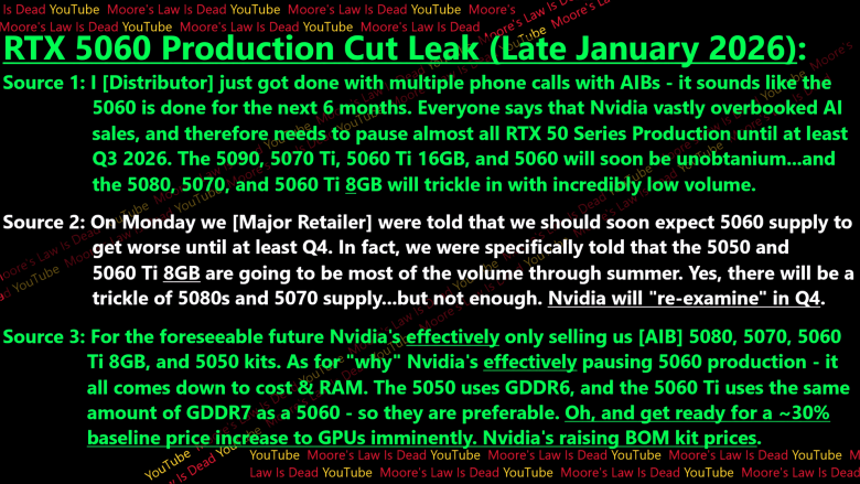 Zprávy o omezení výroby GeForce RTX 5060 (MLID)