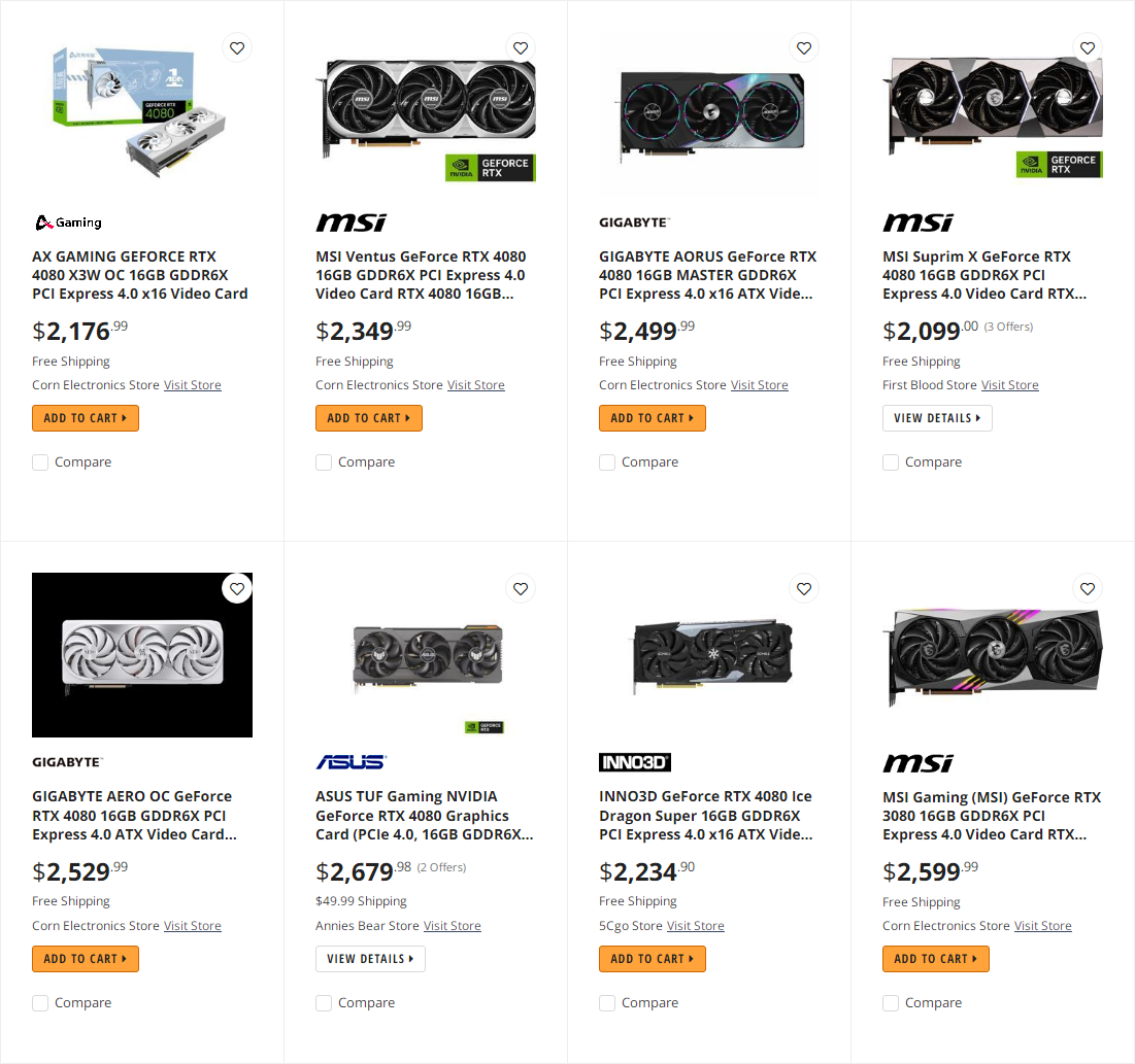 Jako druhý a patrně ještě větší problém se jeví, že karty nejsou dostupné za doporučenou cenu ($1199). Nabídka NewEgg překypuje modely za >$2000. Amazon je podstatně levnější, nabízí karty od $1477, byť na výběr je až v cenové relaci kolem $1700-1800. Že by cena začínající na ~$1500 měla nějaký efekt, se ale říct nedá: V žebříčku nejprodávanějších karet Amazonu najdete první GeForce RTX 4080 na 77. místě (paradoxně i z dnešního pohledu předražená GeForce RTX 3090 Ti FE za $1679 dokázala při 56. místě oslovit více zákazníků).