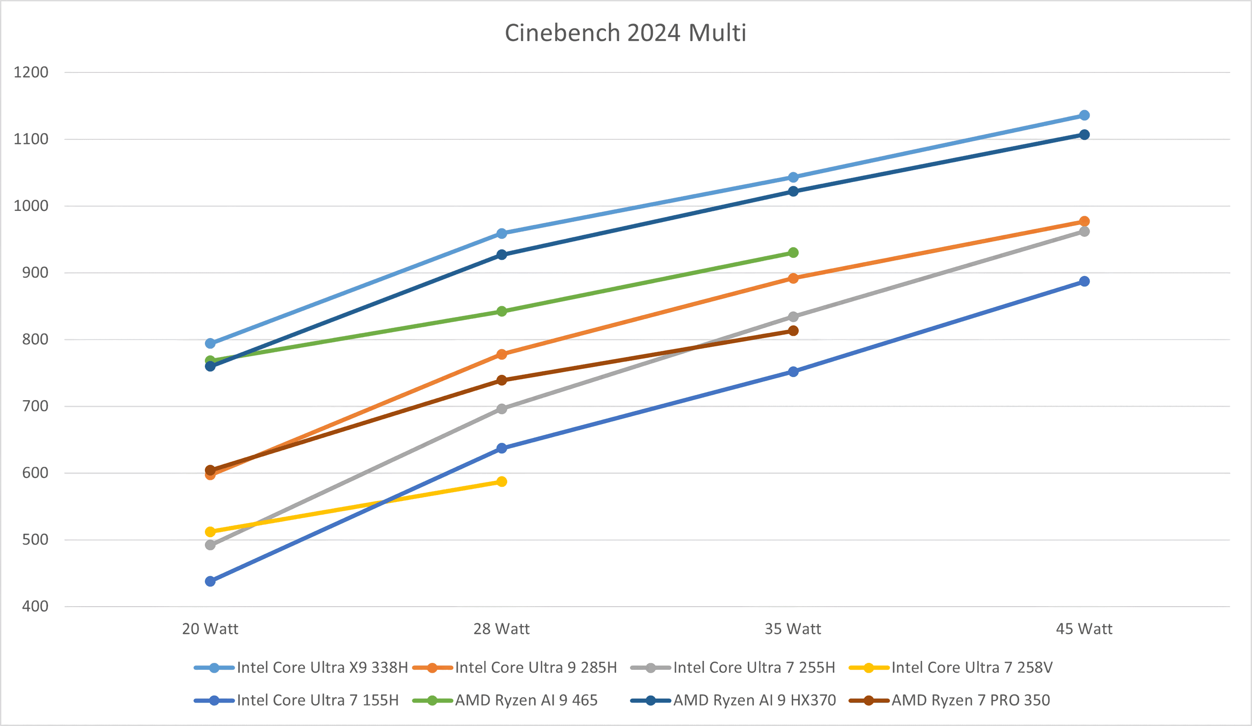 V testu při omezení na stejnou energetickou hladinou dosahuje Core Ultra X9 388H o 2-4 % vyšší energetické efektivity než Ryzen AI 9 HX 370, podle konkrétního limitu.
