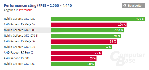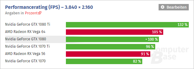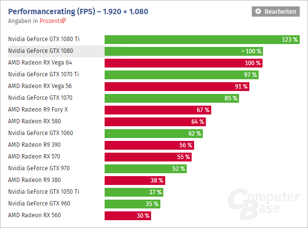 Podle novějších testů je výkon v 1920×1080 při srovnání s GeForce GTX 1080 plichta, takže se v tomto relativním srovnání zlepšil o pět procentních bodů.