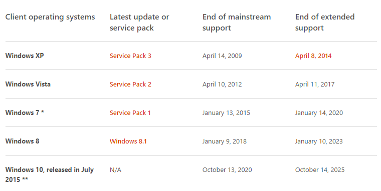 Jak se zdá, skutečně o ni přijdou. Microsoft v přehledu podpory jednotlivých verzí Windows doplnil datum ukončení podpory Windows 10. K ukončení mainstreamové podpory dojde 13. listopadu 2020, k ukončení rozšířené podpory 14. října 2025. Podmínkou podpory je dále instalace všech předešlých aktualizací, neboť aktualizace jsou v případě desítek kumulativní (=oficiální stanovisko Microsoftu).