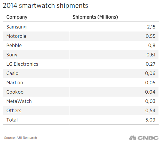 U této příležitosti by se asi slušelo uvést, že Android není ve stávajícím světě chytrých hodinek v převaze. Proto ani srovnání, kterým je často ilustrován úspěch Apple Watch není tak úplně objektivní - jde o zmíněných 720 tisíc prodaných androidích hodinek v roce 2014 vs. 975 tisíc předobjednaných Apple Watch. Celkově se ale loni prodalo přes 5 milionů chytrých hodinek, z čehož si 2,15 milionu ukrojil Samsung (využívá OS Tizen, s Androidem experimentoval jen dočasně).