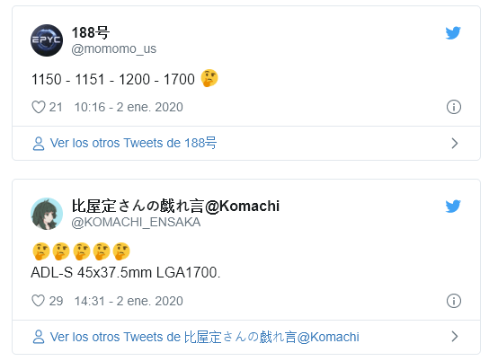 Podle Komachi bude socketem LGA1700 jako první vybaven procesor Alder Lake, o němž je toho zatím známo velmi málo. Nyní máme na trhu Coffee Lake-refresh (8× Skylake, 14nm), po něm bude následovat Comet Lake (10× Skylake, 14nm), asi v roce 2021 Rocket Lake (8-10× Willow Cove, 14nm) a někdy po něm Alder Lake. Očekává se, že Alder Lake by mohl být první 10nm desktopový procesor. Není známo, z jakých procesorových jader vychází ani kolik jich přinese, ale teoreticky připadá v úvahu 10-16 jader Willow Cove anebo 10nm backport 10-12 jader původně vyvinutých pro 7nm Meteor Lake.