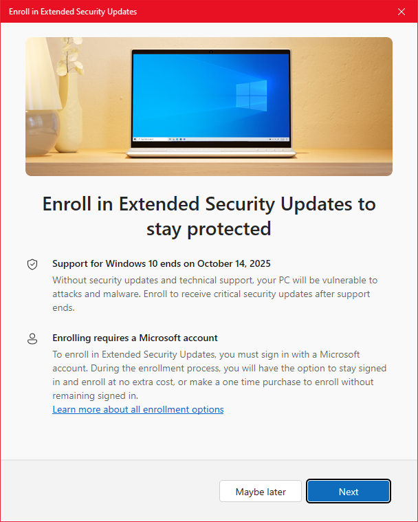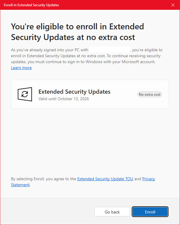 Aby ESU fungovalo, je potřeba být nadále přihlášený Microsoft účtem v systému, přičemž přihlásit se můžete kdykoliv během následujících měsíců.