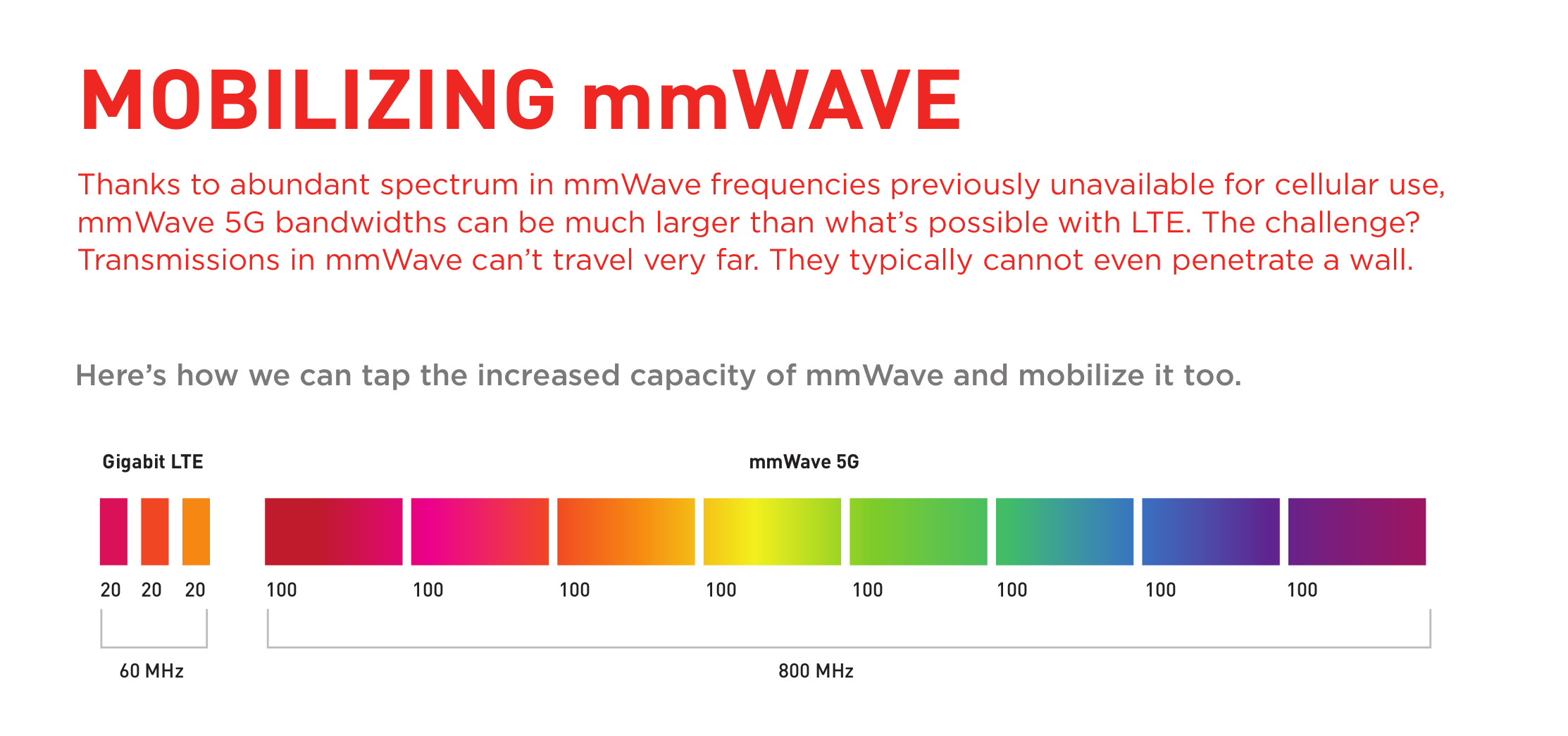 Qualcomm používá 28 GHz pásmo milimetrových vln (mmWave) za použití výrazně širšího přenosového pásma ve srovnání se 4G. DE facto tak z velké části získává vysokou rychlost právě díky širokému pásmu. Srdcem nového 5G modemu jsou ale také sofistikovanější algoritmy, které si s takto komplexním signálem umí poradit a přetvořit jej do srozumitelné podpoby. Rychlost tak může dosahovat teoreticky až 5 GBit/s, tedy nějakých ±640 MB/s.